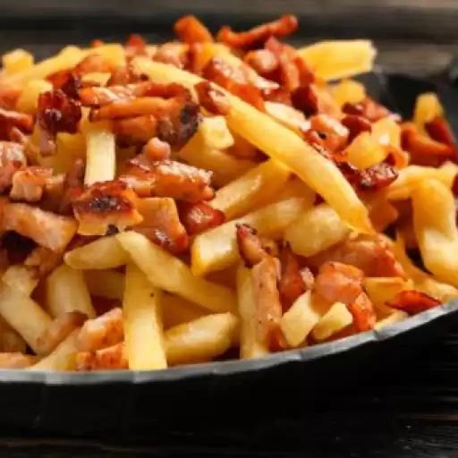 Batata frita, calabresa, bacon, filé de frango grelhado, parmesão ralado